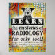 A humourous re-imagined vintage advertisement for radiology, only 10c! Colourful, red, blue and yellow abstract painting with black and white.