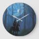 Mysterious Black Knight in the Moonlit Forest Large Clock