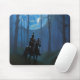 Mysterious Black Knight in the Moonlit Forest Mouse Pad