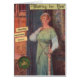Blank card collage of mediaeval painting of a beautiful woman with sword evoking images of Arthurian romance; crown on lower left; words say Beautiful, Mysterious, Damsel