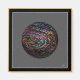 Modern digital art design of a multi-coloured glass ball, with a neutral background and frame.