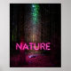 Digital composition of my own photograph with an added neon sign nature in magenta colour with glow and lighting all around the forest.