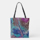 What a super tote bag in turquoise, blue, fushia, deep burgundy and white jewel tones. This is taken from a painting by the same name by Joy Lomenick.