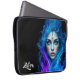 Add a supernatural touch to your laptop or tablet with this sleeve, which features an otherworldly female with ice blue eyes and delicate floral tattoos on her face, artistically emerging from blue and purple flames. Personalise with a name!
