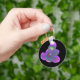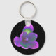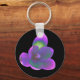 This stunningly beautiful floral keychain features a photo of a crocus flower that has been digitally altered by adding a filter to create shades of pink, green, blue and purple. The flower is on a black background.