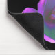 This weird and wonderful floral mousepad features a photo of a crocus flower that has been digitally altered by adding a filter to create shades of pink, green, blue and purple. The flower is on a black background.