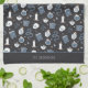 Get ready for Halloween with this spooky chic kitchen towel featuring a pattern of snakes, mystical crystals, spellbooks, candles, jars, skulls, tarot cards, and potions on a charcoal background. Personalise with a name or monogram along the bottom.