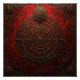 An ornate compass rose glows in gold against a deep crimson backdrop, surrounded by arcane symbols and cryptic inscriptions.