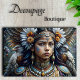 This regal portrait marries mystical elements with ornate detail. The composition features intricate jewellery in turquoise and gold, paired with majestic eagle companions. The colour palette moves from deep teals to burnished golds, with white feather accents and rich earth tones creating dramatic contrast.