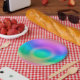 Colourful pastel ombre millennial radial gradient. Rainbow pastel dream gradient. Soothing coloured textures, meditative, holographic, iridescent, prismatic rainbow. Minimal modern design. Good vibes gift.