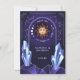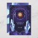 Mystic Sun Event Thank You Card featuring a mystical design inspired by astrology, esoteric, occult, and mysterious elements. This design has hues of blue, purple, and orange, a starry background, crystals, constellations, a sun with a face and moon phases. Design can be customised for all types of events including Bridal Showers, Weddings, Birthdays, Engagements, Anniversaries, Bachelorette Party, Graduation, Baby Showers, Retirement, House Warming and other Parties. Includes a template for personal customisation.