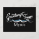 Mystic Connecticut water themed travel design featuring nautical inspired ocean lake river water waves that says Greetings From Mystic
