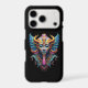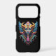 Make a bold statement with this stunning psychedelic deity mask design. Featuring sweeping golden horns, great feathered wings, and an ornately decorated face in rich teal, cobalt, violet and gold, this eye-catching print is packed with intricate detail that rewards a closer look every time.