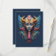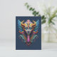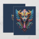 Make a bold statement with this stunning psychedelic deity mask design. Featuring sweeping golden horns, great feathered wings, and an ornately decorated face in rich teal, cobalt, violet and gold, this eye-catching print is packed with intricate detail that rewards a closer look every time.