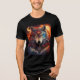 Mystic Wolf with Crescent Moons and Red Blossoms Tri-Blend Shirt