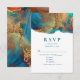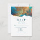 Mystical Abstract Teal Coral Gold Wedding RSVP Card