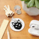 A sleek and enchanting keychain design features the mystical face of a black cat in bold black with white features. The cat's eyes are large and mesmerising, exuding an air of mystery. Above its head, a triple moon symbol, with the waxing, full, and waning moons, adds a touch of mystical charm. The simplicity of the design, with its stark contrast, makes it both elegant and captivating, perfect for those who love witchy, magical aesthetics.
