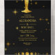 Mystical Black Gold Celestial Stars Wedding All In One Invitation