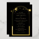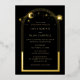 Mystical Black Gold Sun Star Moon Astronomy Space Foil Wedding Invitations features sun, moon and stars with a gold frame on a black background. Inside is your custom wedding invitation information. Personalise by editing the text in the text boxes. Designed for you by ©Evco Studio www.zazzle.com/store/evcostudio