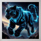 A glowing black panther adorned with magical patterns, running dynamically in a cosmic landscape.