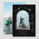 Mystical Black Silver Sun Moon Star Space Save The Dates features a silver sun, moon and stars frame on a black background. Inside is your favourite photo and your custom save the date information. Add an additional photo on the reverse. Personalise by editing the text in the text boxes. Designed for you by ©2022 Evco Studio www.zazzle.com/store/evcostudio