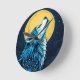 Mystical Blue Wolf Howling at a Full Moon Round Clock