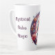 Monogrammed for you to insert your own text and image, this cute Mystical Boho Magic is colourful with maroon text on a white background. Latte mug.