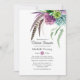 Trendy succulent plants with boho feathers long distance virtual baby or bridal shower invitation customisable to your event specifics.