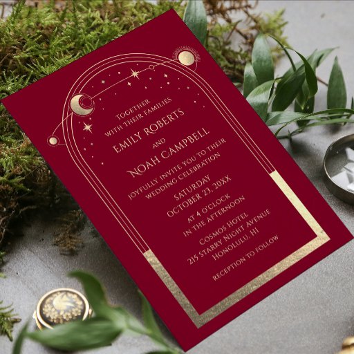 Mystical Burgundy Gold Sun Star Moon Space Wedding Program