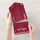 Mystical Burgundy Sun Star Moon Astronomy Space All In One Wedding Invitations features gold sun, moon and stars with a gold coloured frame on a burgundy background. Inside is your custom wedding invitation information. Below is the removable RSVP card with three meal choice options for you guests to remove and return. Personalise by editing the text in the text boxes. For additional number of meal choice options with this design please visit our store and view our collection. Meal type can be changed by simply editing the text in the personalise this design section. Personalise for individual guests by adding their custom names and addresses on each invitation. Designed for you by ©Evco Studio www.zazzle.com/store/evcostudio