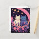 A charming postcard featuring two mystical cats surrounded by flowers, stars, and a crescent moon, perfect for sending enchanting vibes to your loved ones.