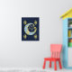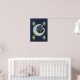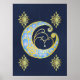 A crescent moon with swirling lines and a triqueta, the Celtic symbol for eternal love. All in the colours of moonlight, a bit of blue, a bit of gold tones, over a dark midnight blue background.