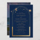 Mystical Chic Blue Gold Star Moon Photo Space Invitation