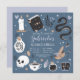 Plan your fortune teller, gypsy, or Halloween themed quinceanera birthday party with these spooky chic invitations in a boho nature inspired colour palette. Design features illustrations of a snake, spellbook, candle, jar, skull, tarot cards, and potion surrounding your quinceanera celebration details.