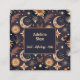 Graphic is celestial moon, stars, flowers and leaves on a smokey dark blue background. All text is easily customisable.