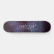 Skateboard with the word 'dream' in pastel violet capital letters set against a starry night sky amid dusty violet and blue nebula space clouds. Mystical and magical like the mysterious realm of dreams. Use the text templates to add a name, favorite phrase, or other custom text. ♡ Idyllfire