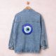 Discover the aura of protection with our Unique Denim Jacket adorned with a mystical evil eye/amulet design on the reverse. This trendy jacket not only offers a stylish look but also encapsulates a sense of safeguard through its amulet imagery. Perfect for casual outings or thematic gatherings, this denim jacket is a blend of modern fashion with ancient symbolism. The evil eye design reflects a compelling narrative, making it not just a piece of clothing but a charm that resonates with the wearer.