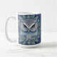 This whimsical fantasy forest owl is depicted as a magical and mystical creature, with it's piercing yellow eyes and unique feather pattern. It is set on a background of winter foliage and enchanting, sparkling stars amongst the night sky.