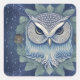 This whimsical fantasy forest owl is depicted as a magical and mystical creature, with it's piercing yellow eyes and unique feather pattern. It is set on a background of winter foliage and enchanting, sparkling stars amongst the night sky.