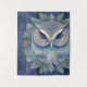 This whimsical fantasy forest owl is depicted as a magical and mystical creature, with it's piercing yellow eyes and unique feather pattern. It is set on a background of winter foliage and enchanting, sparkling stars amongst the night sky.
