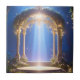 Transport yourself to a realm of pure magic with this captivating ceramic tile featuring an ethereal archway nestled in a mystical forest. Brilliant light beams illuminate the ornate golden arch, classical columns, and lush foliage, creating a divine and serene sanctuary. A stone pathway leads towards a circular platform bathed in radiant light, surrounded by vibrant greenery and softly glowing flora. This artwork evokes a sense of peace, spirituality, and wonder, suggesting a hidden sanctuary or a gateway to another realm.