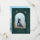 Mystical Green Gold Sun Moon Stars Space Galaxy Celestial Cosmos Astronomy Save The Dates features a gold sun, moon and stars frame on a green background. Inside is your favourite photo and your custom save the date information. Add an additional photo on the reverse. Personalise by editing the text in the text boxes. Designed for you by ©2022 Evco Studio www.zazzle.com/store/evcostudio