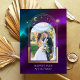 Mystical Happily Ever After Cosmic Purple Teal Gold Sun Moon Stars Astronomy Wedding Reception Celebration Invitations Invites Einvites features a gold sun, moon and stars with a golden frame on a colourful mystical purple, teal and blue cosmic background with your favourite photo inside. Personalise with your wedding reception celebration information. Available as a physical paper invitation and instant download printable digital invitations. Designed for you by Evco Studio www.zazzle.com/store/evcostudio