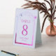 Mystical Lavender Pink Sun Moon Stars Wedding Table Numbers Table Tent Sign features a pink and purple sun, moon and stars frame on a pastel lavender background. Inside is your custom table number information. Designed for you by Evco Studio www.zazzle.com/store/evcostudio