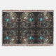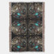 Decorative metal ornament of flowers and leaves, in the style of dreamlike illustration, dark bronze, and azure.