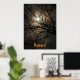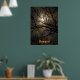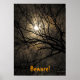 This Halloween poster features a mystical nighttime sky. The air is permeated with mist. The full moon shining through the trees lights up the misty clouds in shades of gold, yellow orange, white and brown and forms an interesting abstract pattern. The text reads: Beware. It can be customised to suit your needs.