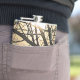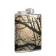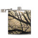 This striking hip flask features a mystical night sky. The air is permeated with mist. The full moon shining through the trees branches lights up the misty clouds in shades of gold, yellow orange, white and brown and forms an interesting abstract pattern.
