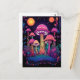 A mesmerising artwork featuring a neon-coloured mushroom forest under a magical night sky, perfect for fans of psychedelic and fantasy art.