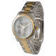 Very good quality watch that looks good whether dressing up or down. The band is sturdy. The watch is rather large so might not work for smaller folks. Recommended as a good gift. Printing is just a touch light but adds a nice touch of personalization.