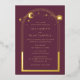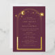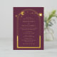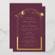 Mystical Plum Gold Sun Star Moon Astronomy Space Foil Wedding Invitations features sun, moon and stars with a gold frame on a plum background. Inside is your custom wedding invitation information. Personalise by editing the text in the text boxes. Designed for you by ©Evco Studio www.zazzle.com/store/evcostudio